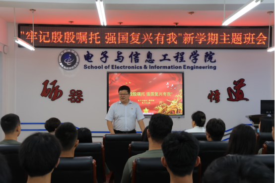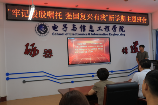 电子221班于8月31日下午在五号楼509会议室,召开“牢记殷殷嘱托,强国复兴有我”新学期主题班会。学校党委常委、宣传部部长王刚,离退休人员管理处副处长马春波,好色视频