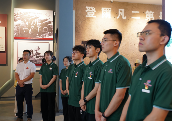 启程仪式上,畅普联盟团队首站来到配水池战斗遗址陈列馆。这里不仅是历史的见证,更是精神的传承。讲解员以标准流利的普通话引领着团队成员深入历史的脉络,普通话在这里,不仅仅是一种沟通的工具,它更是一座连接过去与现在,传递历史与文化的坚实桥梁。在陈列馆内,一幅幅历史图画映入眼帘,全息投影的历史画面更是将大家带回到了那个硝烟弥漫的年代,使队员们仿佛亲眼见证了革命先烈们为民族独立和人民幸福而进行的英勇斗争。