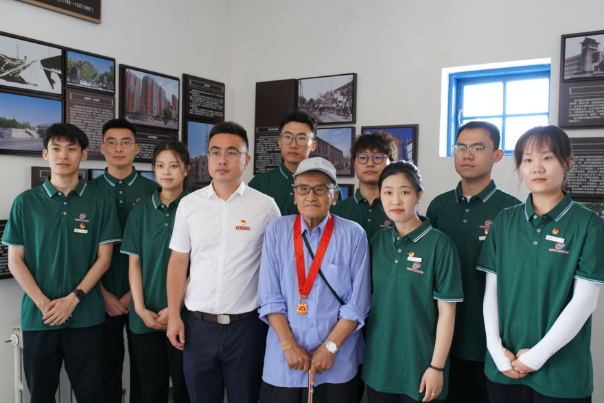 在配水池陈列室内,团队成员们偶然遇到了一位曾经身披戎装在战火硝烟中披荆斩棘的老战士、老党员,他的胸前还挂着象征着光辉历史的“光荣在党50年”纪念奖章。他指着墙上的史料照片,回忆着当年的战斗壮举,他的那句“我是一名共产党员!”回荡在每位团队成员的耳边。这份珍贵的经历让在场的所有参观者倍感敬佩和感动,团队成员们也更加坚定了传承红色文化、弘扬英烈精神的决心。
