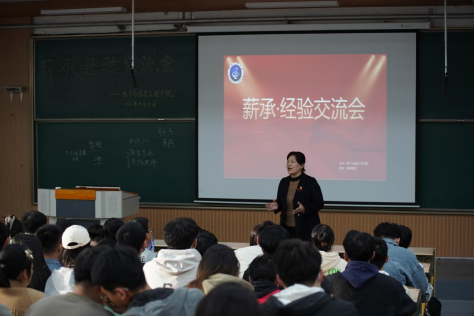 举办“薪承·经验交流会”,作为研究生思想成长系列活动首站活动,邀请优秀毕业生进行就业、研学等方面经验分享。学院党委副书记兼副院长杜君应邀出席,辅导员奚汇以及近250名在校研究生共同参会。