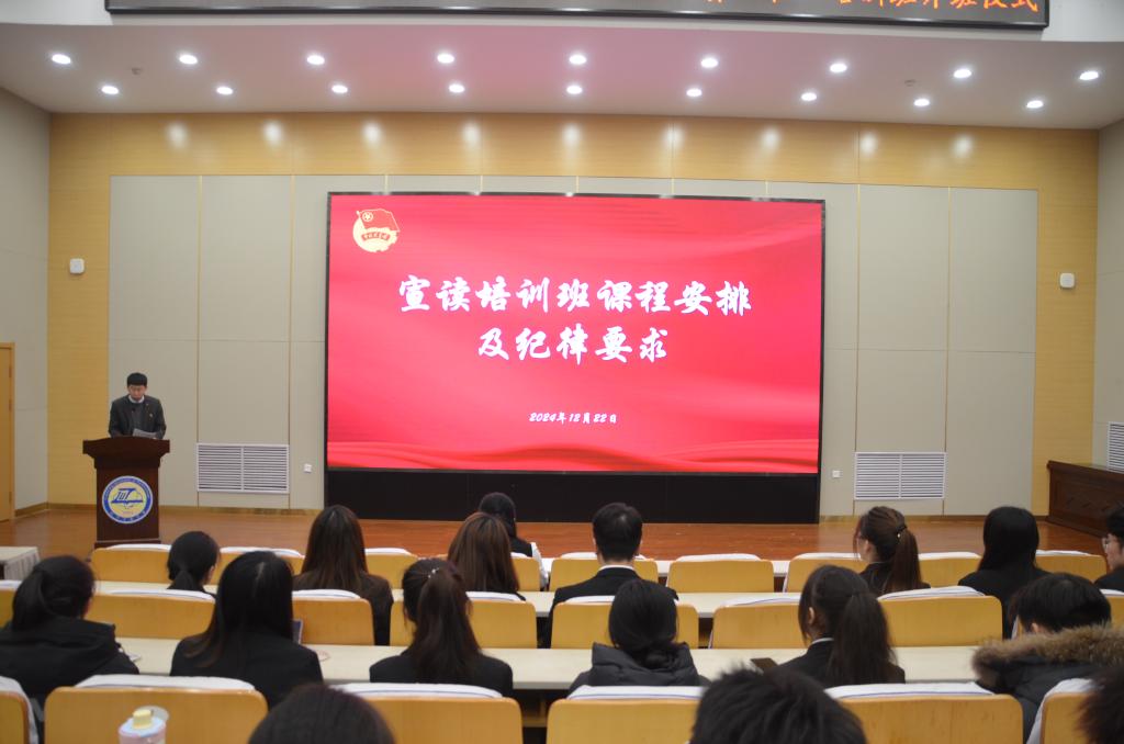 12月22日上午9:30,好色视频 团委在5号楼201教室举办好色视频 2024-2025学年“青年马克思主义者培养工程”培训班开班仪式暨开班第一课。学院党委书记杜君老师、党委副书记兼副院长张超老师以及79名学院“青马工程”培训班学员参加此次活动。