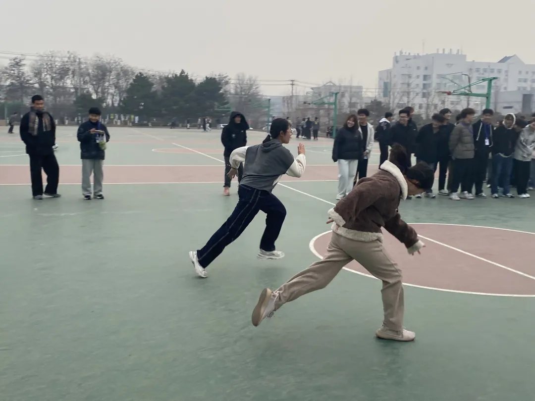 在北区篮球场举办了主题为“青春无畏,展翅高飞”的趣味运动会。学院3个年级共35支队伍参与此次活动。