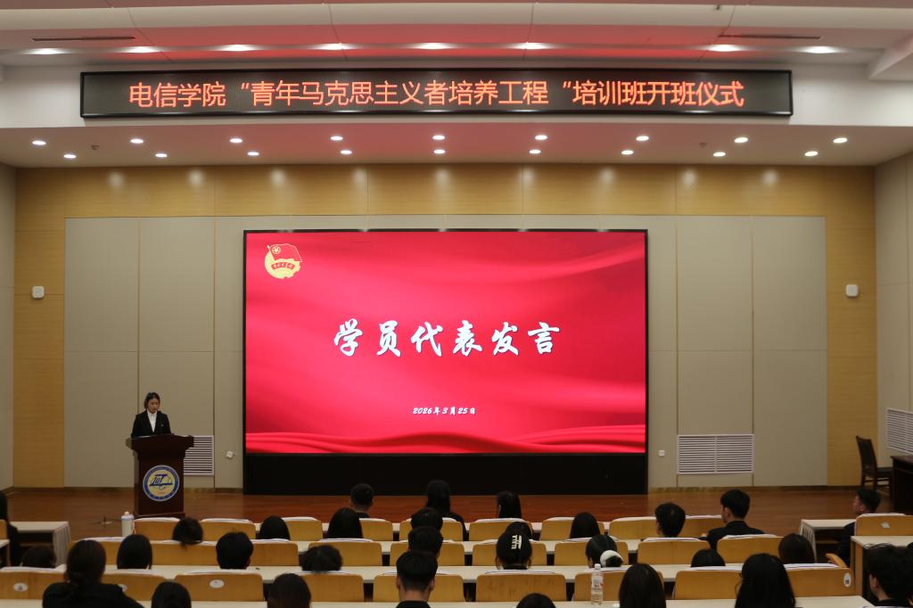 本次活动分为开班仪式与主题授课两个环节。仪式伊始,全体师生肃立并奏唱国歌,随后张超宣读培训班纪律要求,明确学员学习规范与行为准则。青马学员代表张杰发言,她代表全体学员作出勤学笃行、勇担使命的承诺。开班仪式结束后,陈爽以《如何做好一名团学干部》为题开展第一讲,围绕学生干部的责任担当、工作方法与服务意识进行系统讲解,为学员成长提供实践指导。