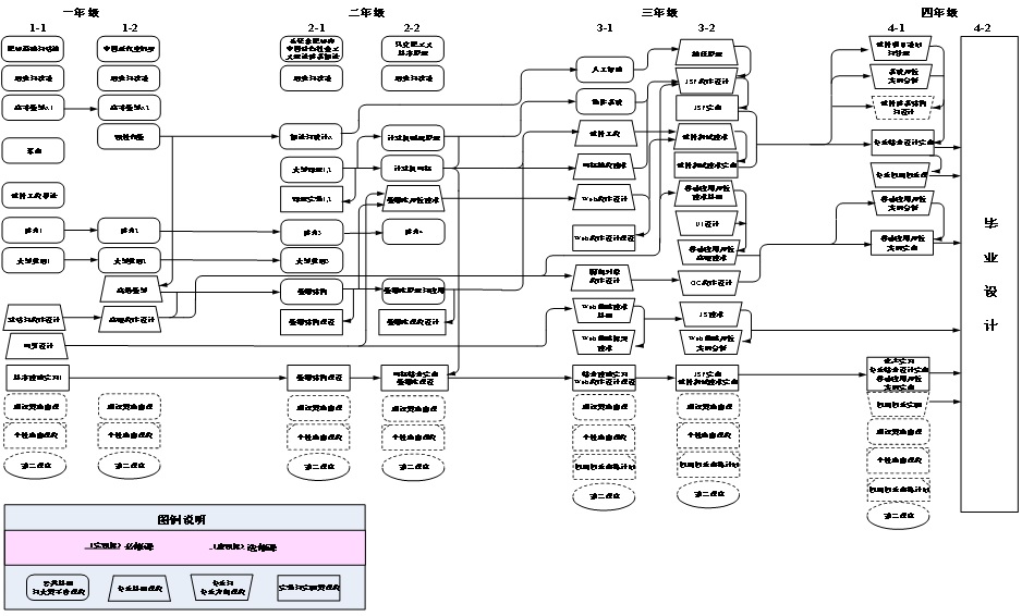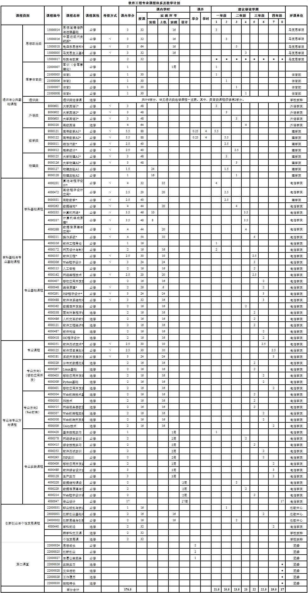 算法与程序设计、离散数学、数据结构、数据库原理与应用、操作系统、计算机组成原理、计算机网络、软件工程、编译原理、软件项目策划与管理、软件测试技术、软件体系结构与设计、系统开发案例分析等。