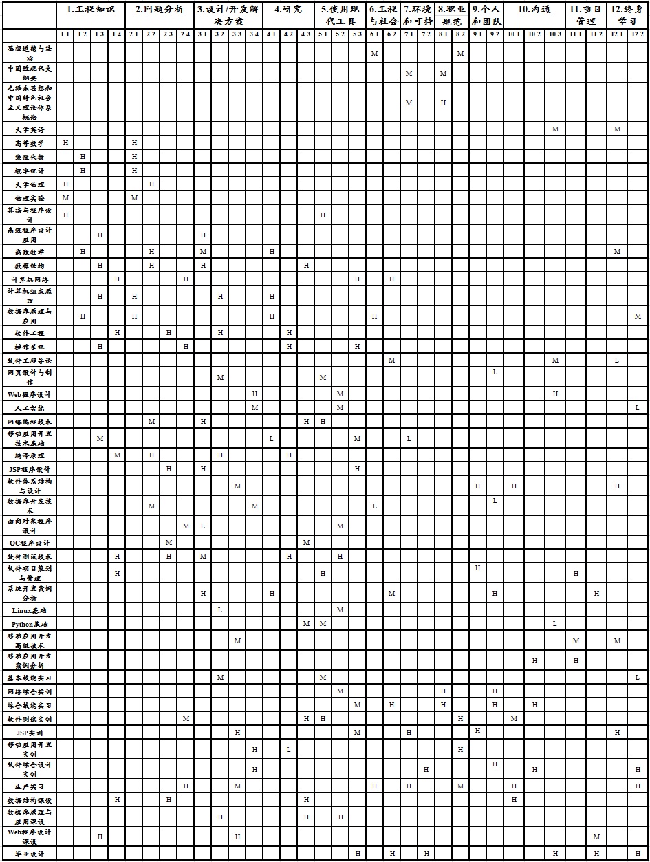 1.工程知识:掌握软件工程专业所需的数学、自然科学、工程基础和专业知识,能将上述知识用于解决软件工程领域的复杂工程问题。